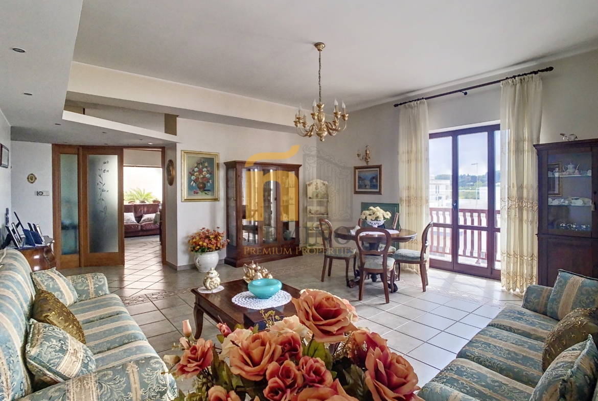L’immobile si compone di 3 camere da letto di cui 1 con bagno ensuite, uno studio trasformabile in una quarta camera da letto, 1 ulteriore bagno ed una lavanderia con doccia e sanitari, una cucina, una spaziosa sala da pranzo ed un soggiorno luminoso dal cui balcone è possibile ammirare la cittadina e il mare a 7 km.