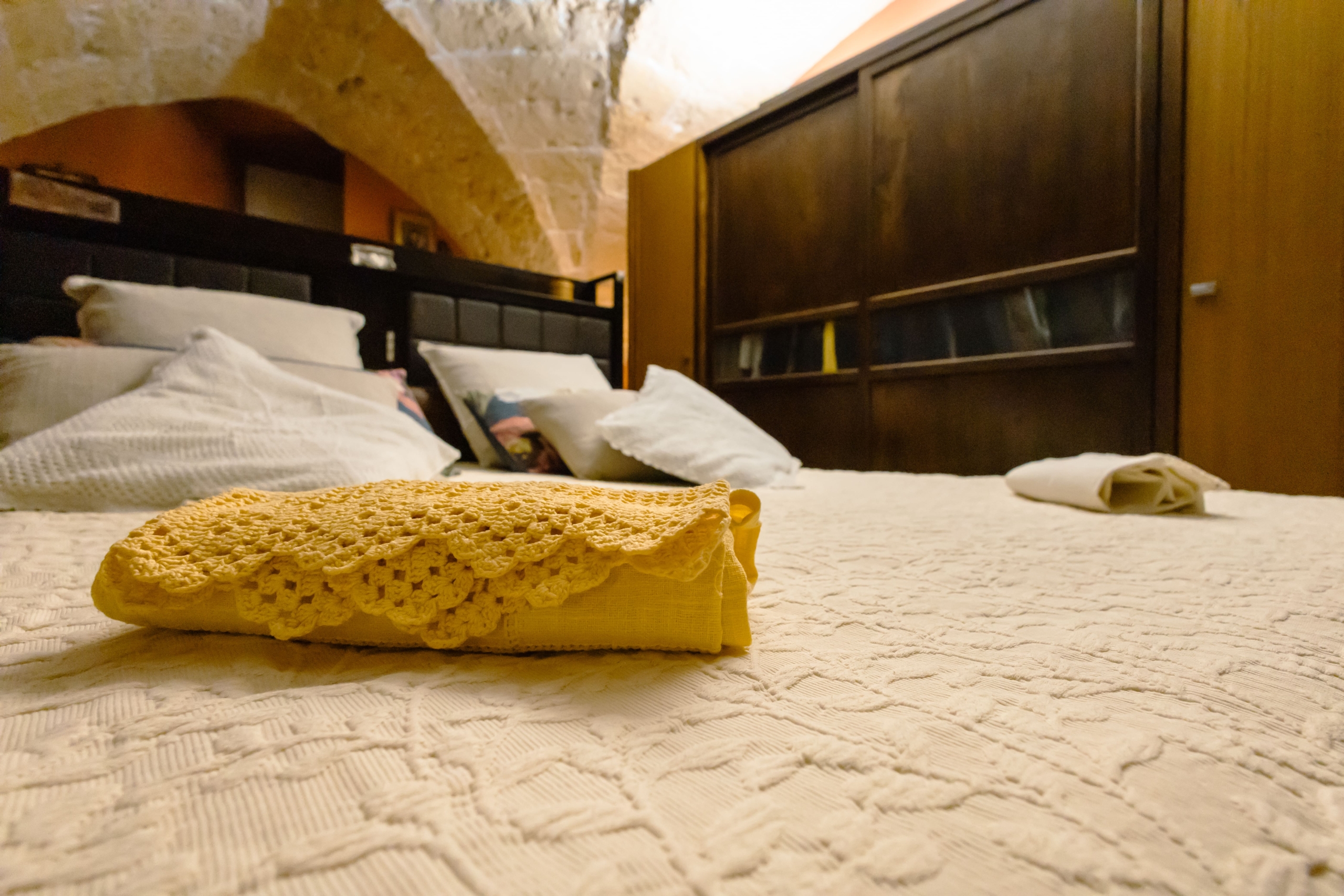 Gli ambienti sono impreziositi dalle volte a stella che donano un sapore salentino all’immobile situato nel centro storico di Nardò, a soli 5 min a piedi dal signorile castello degli Acquaviva-Personè.