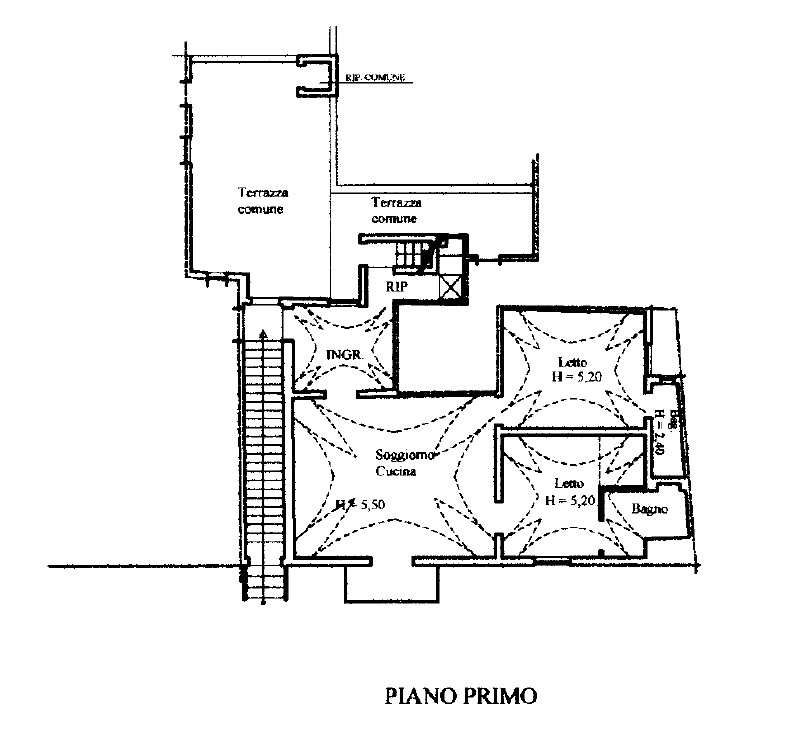 Il secondo appartamento è composto da un ingresso openspace con soggiorno e cucina, 2 camere da letto e 2 bagni. Infine, entrando nel terzo appartamento troviamo un soggiorno con zona pranzo, 2 camere da letto ed 1 bagno.