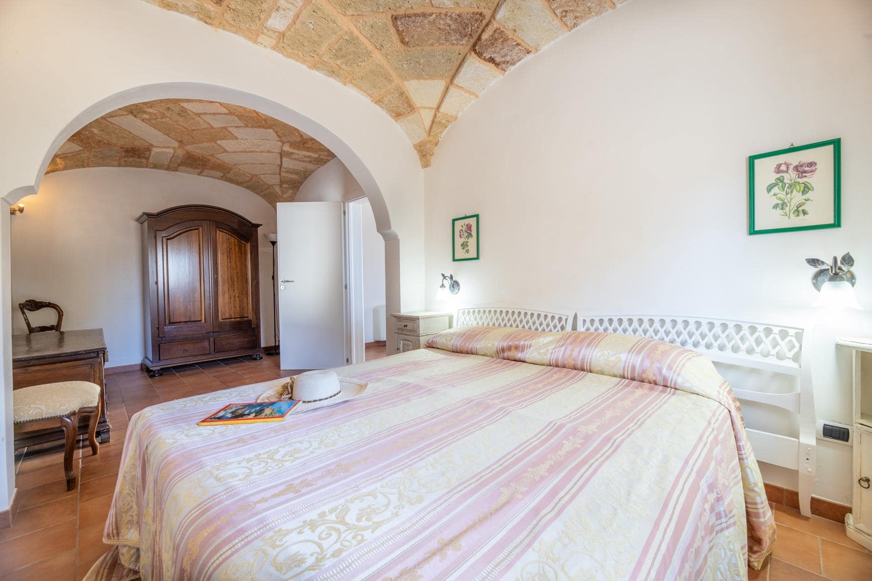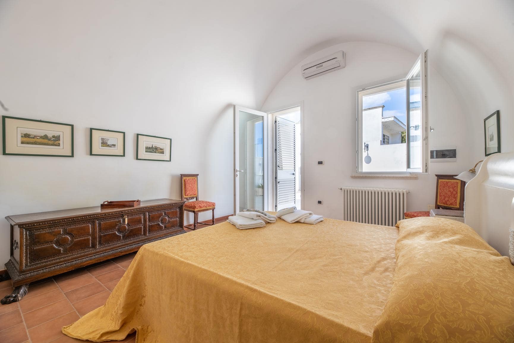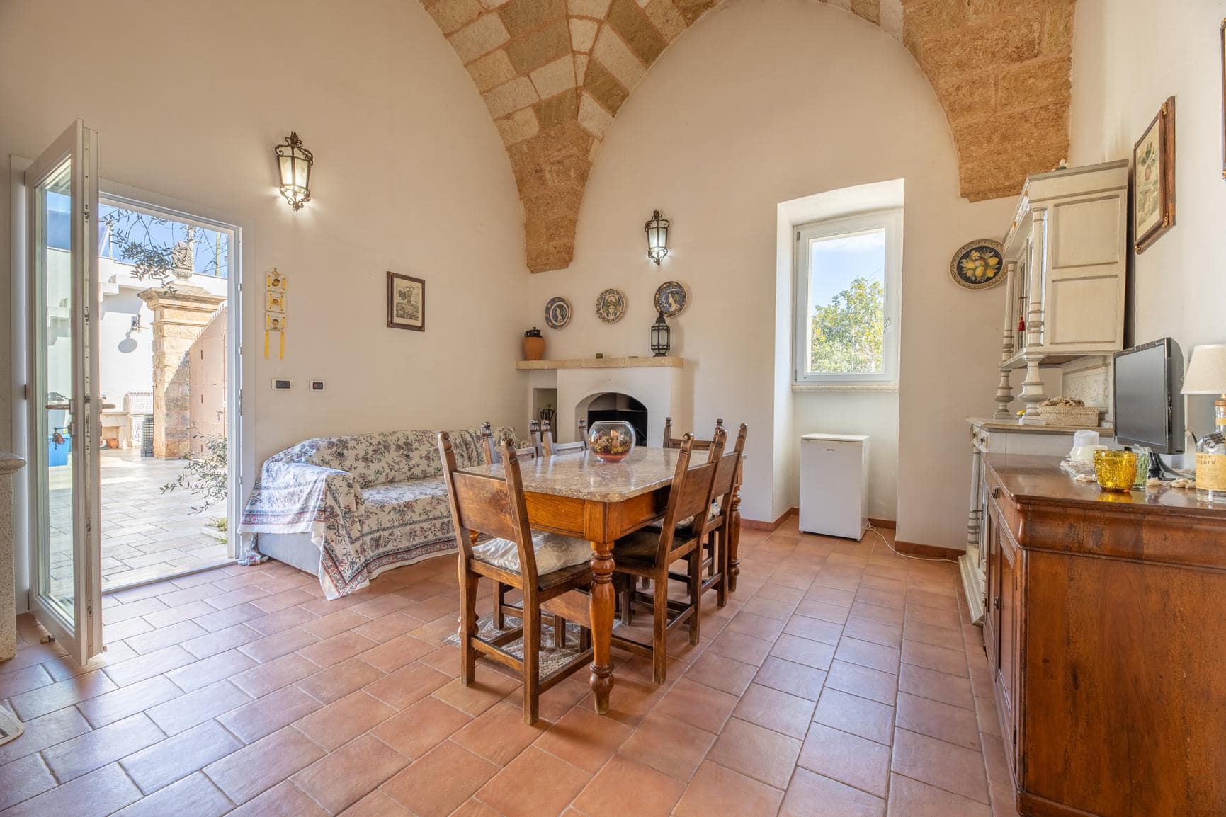 Nella quarta unità, ex pollaio, troviamo 1 appartamento con sala da pranzo e cucina con volta piana, 1 camera da letto con volta a botte e bagno en suite.