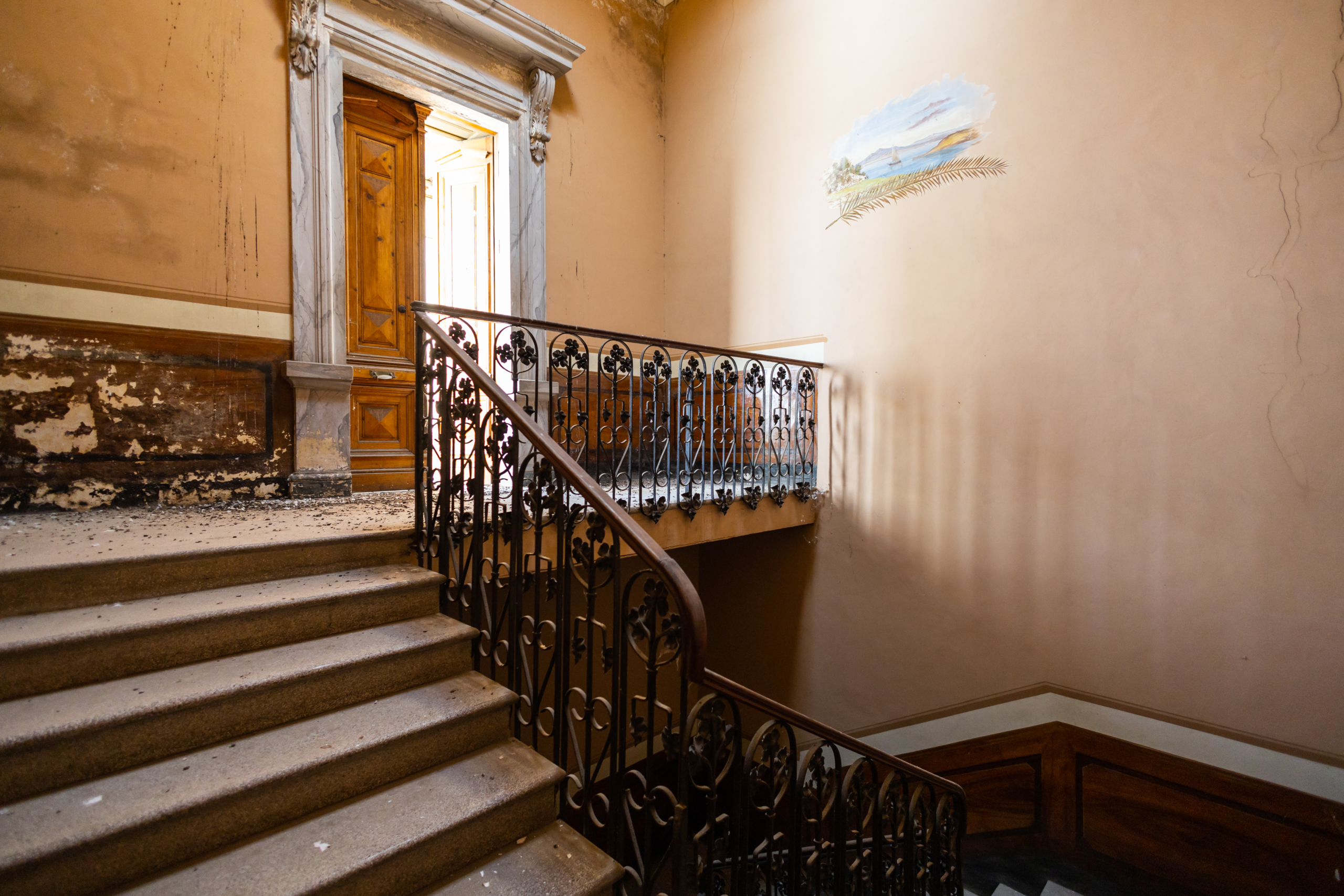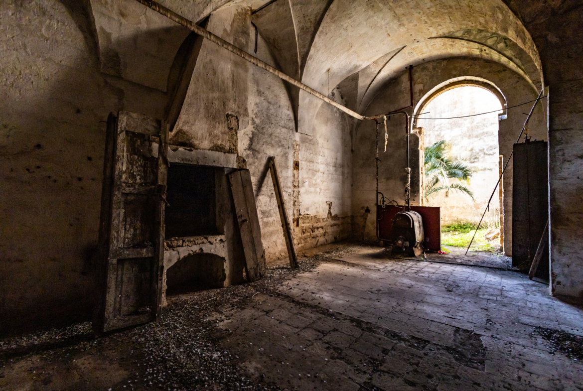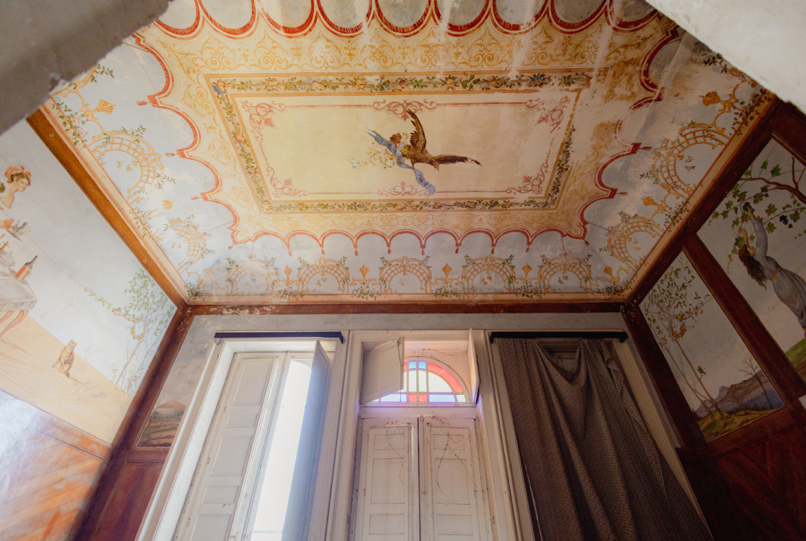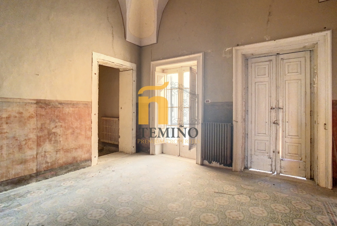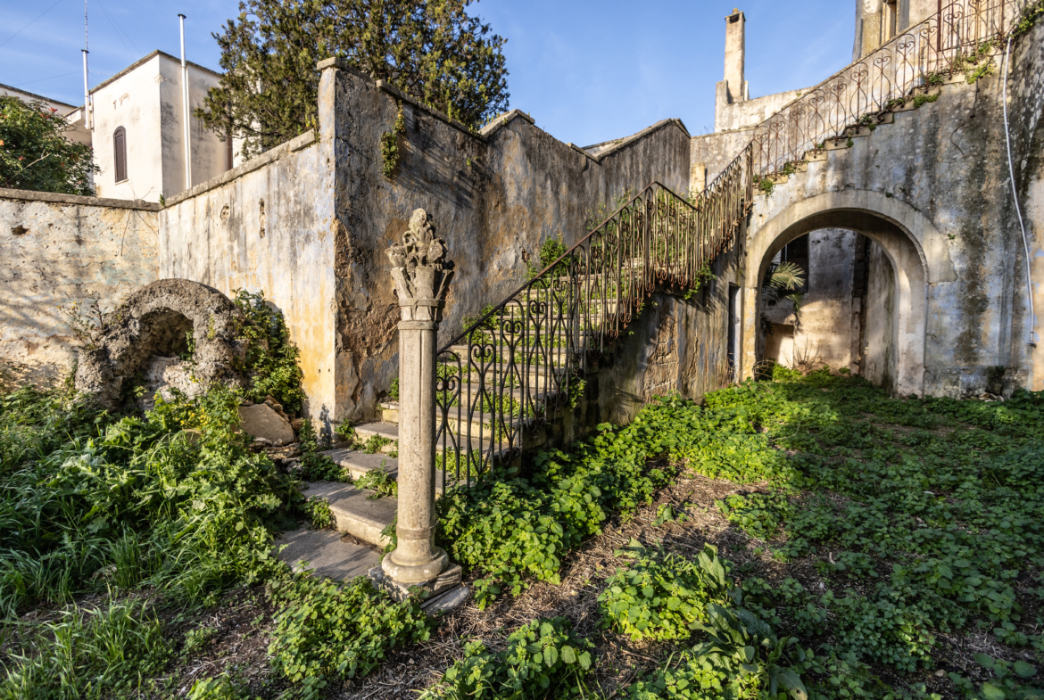 Una volta dentro ci si ritrova di fronte ad un grande arco ed una bella scalinata in ferro battuto che porta al piano superiore, parte nobile del palazzo. Al primo piano di oltre 670mq troviamo 12 vani tra vari salotti, sale da pranzo e saloni di rappresentanza tutti voltati a stella e con degli affreschi ammalianti che donano un certo fascino alla dimora. Uccelli, ancelle e paesaggi incantevoli sono rappresentati sulle pareti della residenza. Entrando, infatti, si viene catapultati in un’altra epoca, addirittura sembra di essere nel salone del tè nella residenza austriaca della principessa Sissi. Immaginati qui ad accogliere i tuoi colti ospiti in un ambiente decorato da sapienti pittori e con le volte a stella altrettanto ornate, pronti a discutere di importanti temi in questo caffè letterario privato. Tutto questo rimanendo nella realtà salentina con i propri usi, costumi e sapori del luogo. A ricordarcelo, c’è un frantoio con macina e presse d’epoca ed una cantina vinicola completa di botti in rovere al piano inferiore, tutti attrezzi utili a farsi da sé olio e vino, oppure da tenere in esposizione, magari nella rimessa adibita a stalla, che dà un tocco in più a questo immobile.