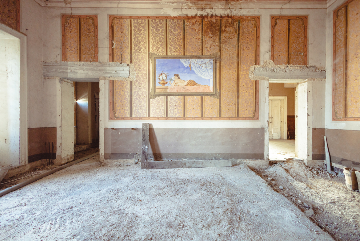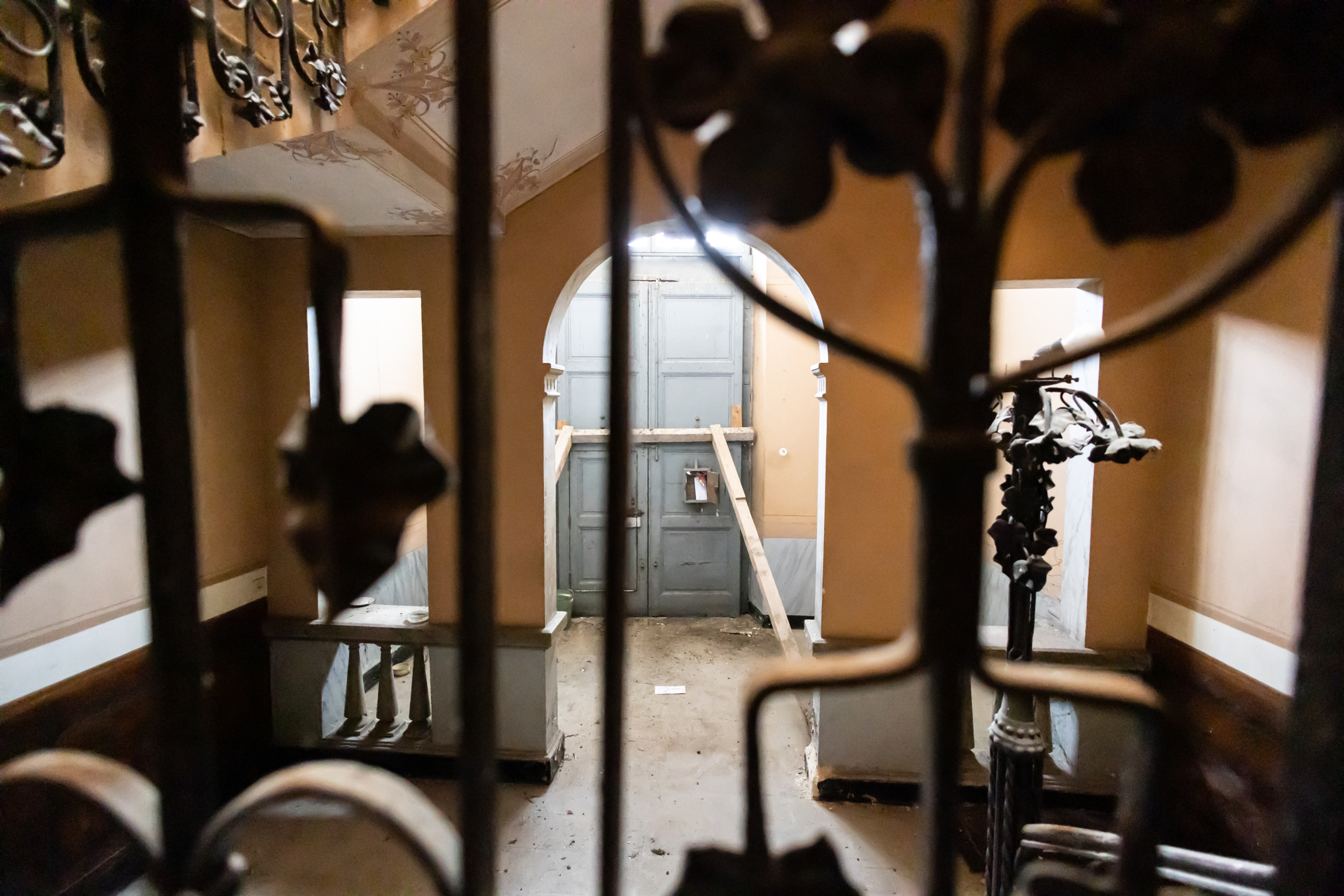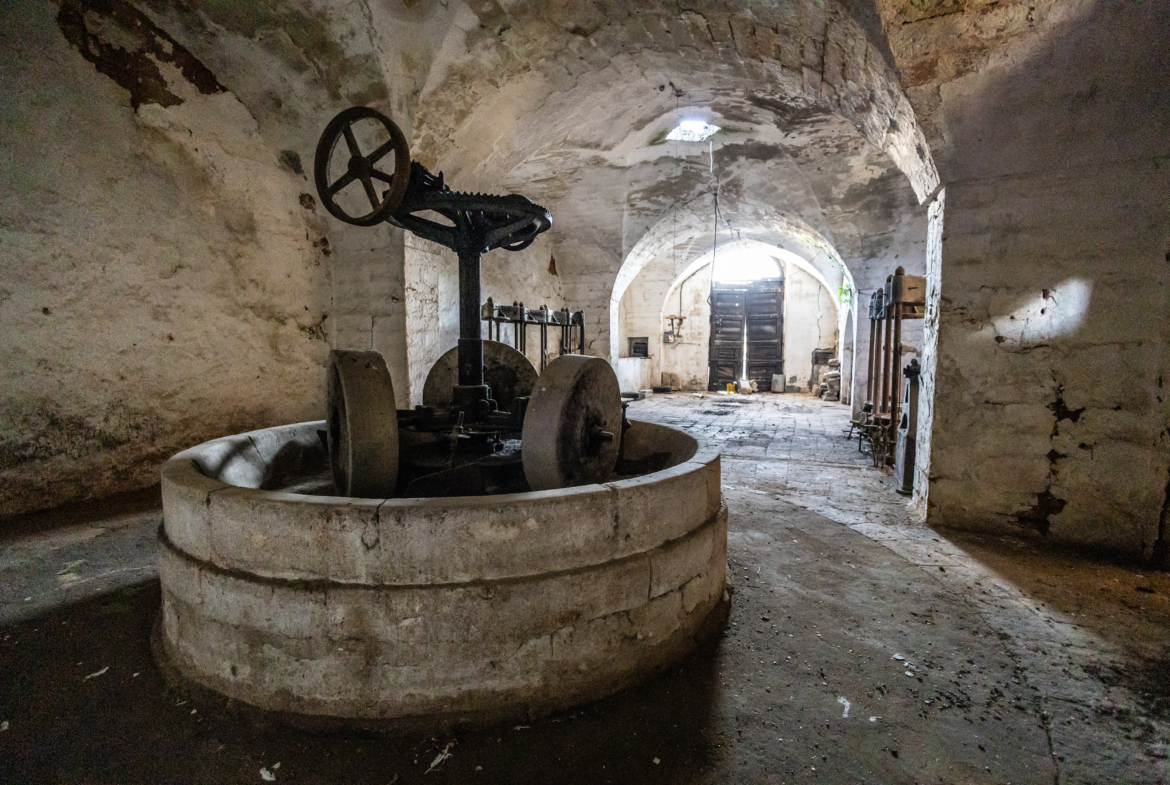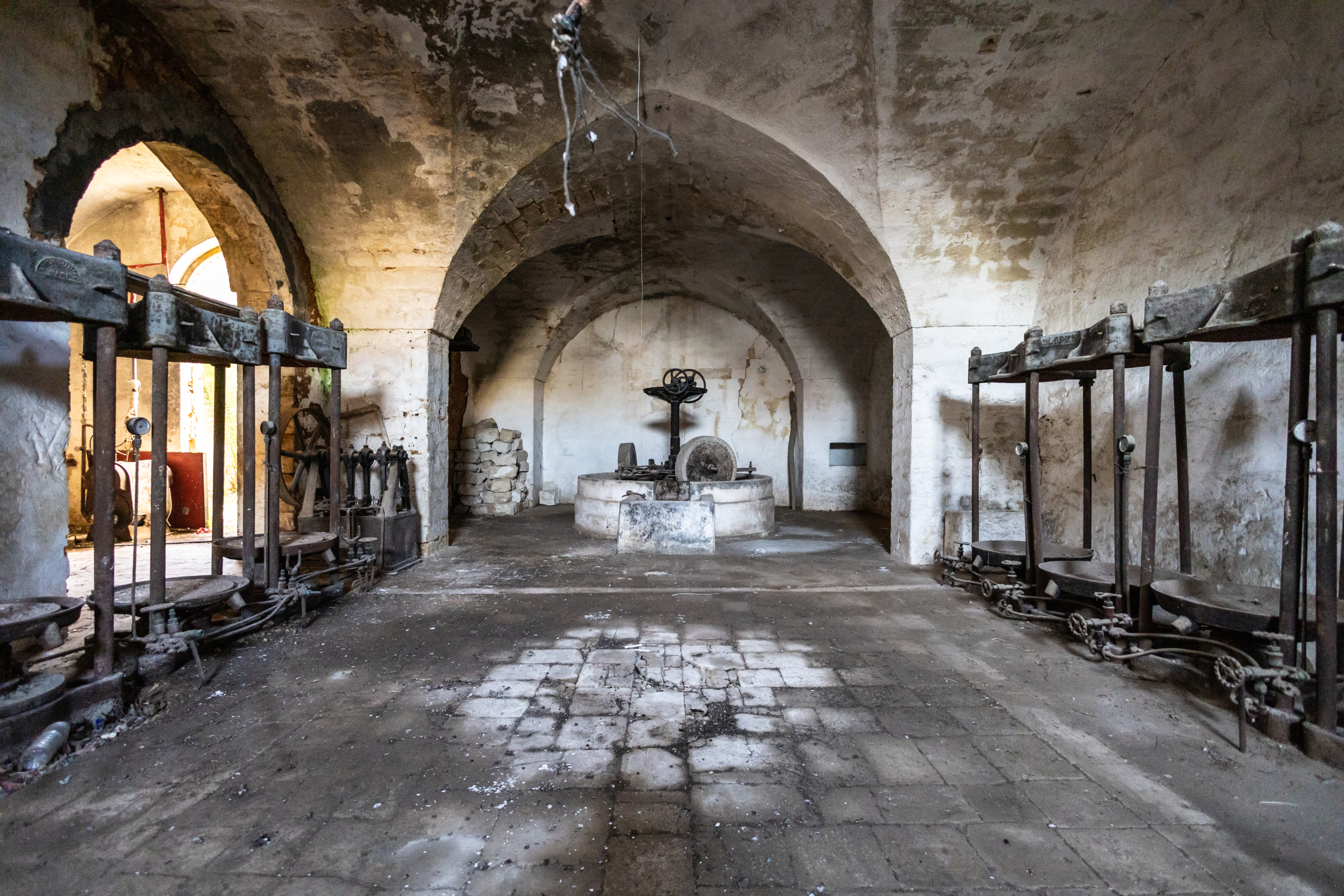 Una volta dentro ci si ritrova di fronte ad un grande arco ed una bella scalinata in ferro battuto che porta al piano superiore, parte nobile del palazzo. Al primo piano di oltre 670mq troviamo 12 vani tra vari salotti, sale da pranzo e saloni di rappresentanza tutti voltati a stella e con degli affreschi ammalianti che donano un certo fascino alla dimora. Uccelli, ancelle e paesaggi incantevoli sono rappresentati sulle pareti della residenza. Entrando, infatti, si viene catapultati in un’altra epoca, addirittura sembra di essere nel salone del tè nella residenza austriaca della principessa Sissi. Immaginati qui ad accogliere i tuoi colti ospiti in un ambiente decorato da sapienti pittori e con le volte a stella altrettanto ornate, pronti a discutere di importanti temi in questo caffè letterario privato. Tutto questo rimanendo nella realtà salentina con i propri usi, costumi e sapori del luogo. A ricordarcelo, c’è un frantoio con macina e presse d’epoca ed una cantina vinicola completa di botti in rovere al piano inferiore, tutti attrezzi utili a farsi da sé olio e vino, oppure da tenere in esposizione, magari nella rimessa adibita a stalla, che dà un tocco in più a questo immobile.