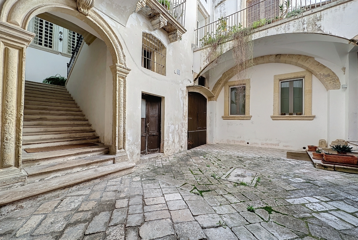 Si accede alla proprietà dal piano terra attraverso un caratteristico androne condiviso con un altro proprietario. Da qui c’è una deliziosa scala realizzata in pietra leccese dove potrete innamorarvi dei particolari affreschi, il cui vano ha una superfice di circa 40mq. L’appartamento, di circa 250mq, gode di una tripla esposizione, che garantisce una luce naturale in ogni angolo della dimora. Composto da due ampie e caratteristiche camere da letto, una sala da pranzo e una cucina abitabile, dispone una zona living che sembra un’opera d’arte con le sue volte a coda di rondine decorate con i capitelli dell’epoca, e di un’ulteriore camera che si adatterà perfettamente alle vostre esigenze. Inoltre la zona living ha un affaccio diretto su un balcone storico. Immagina il privilegio di abitare in un palazzo intriso di storia e fascino. Avrete la possibilità di abitare in un posto dove modernità ed eleganza senza tempo di mescolano. La nostra agenzia immobiliare, ti supporta anche nel re-interpretare questi spazi valorizzandone la storia e conservandone il sapore. Temino Premium Properties é un’agenzia specializzata nella compravendita di immobili che raccontano la storia della Puglia, Lavoriamo solo in esclusiva per aiutarti ad acquistare l’immobile che hai sempre desiderato, in totale sicurezza, trasparenza e massima riservatezza. Temino Premium Properties: your smart property manager!
