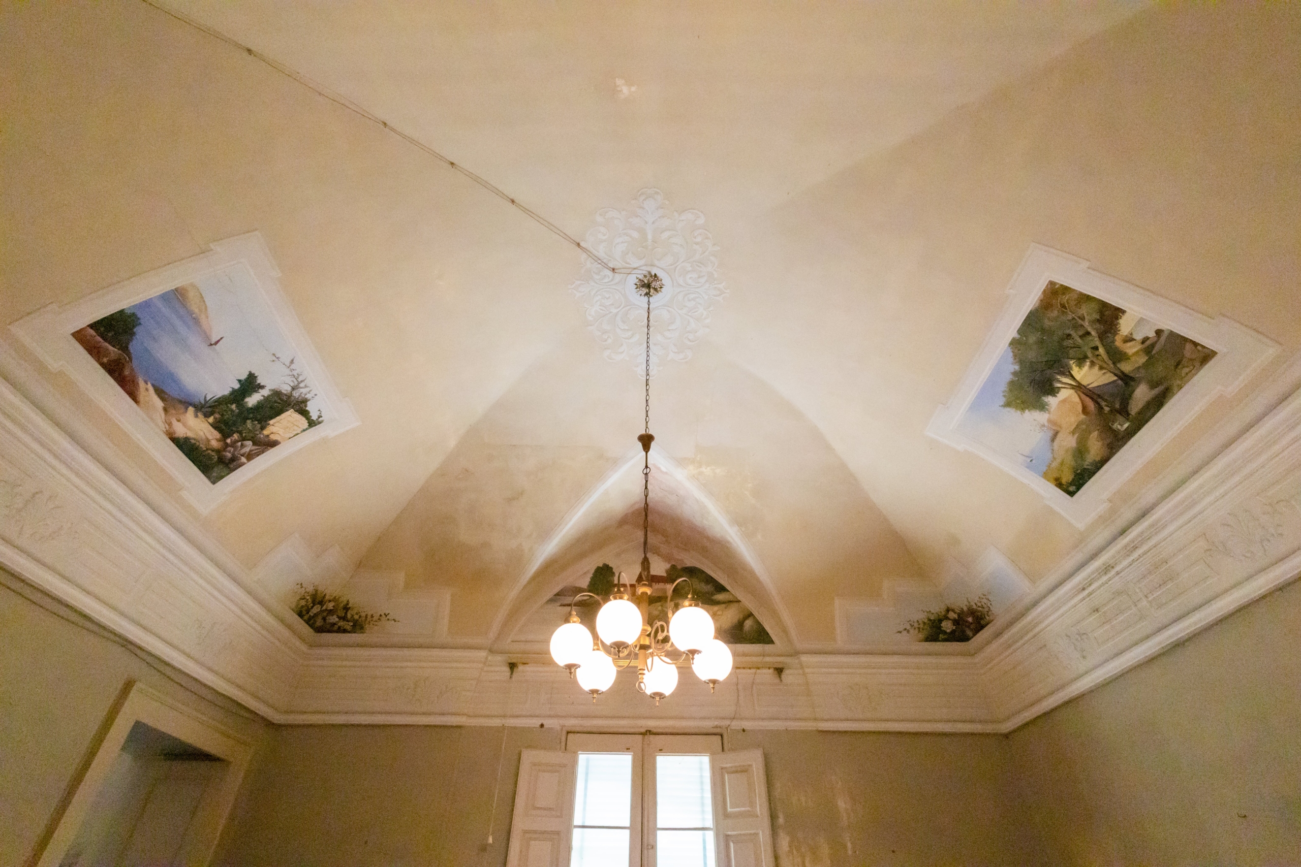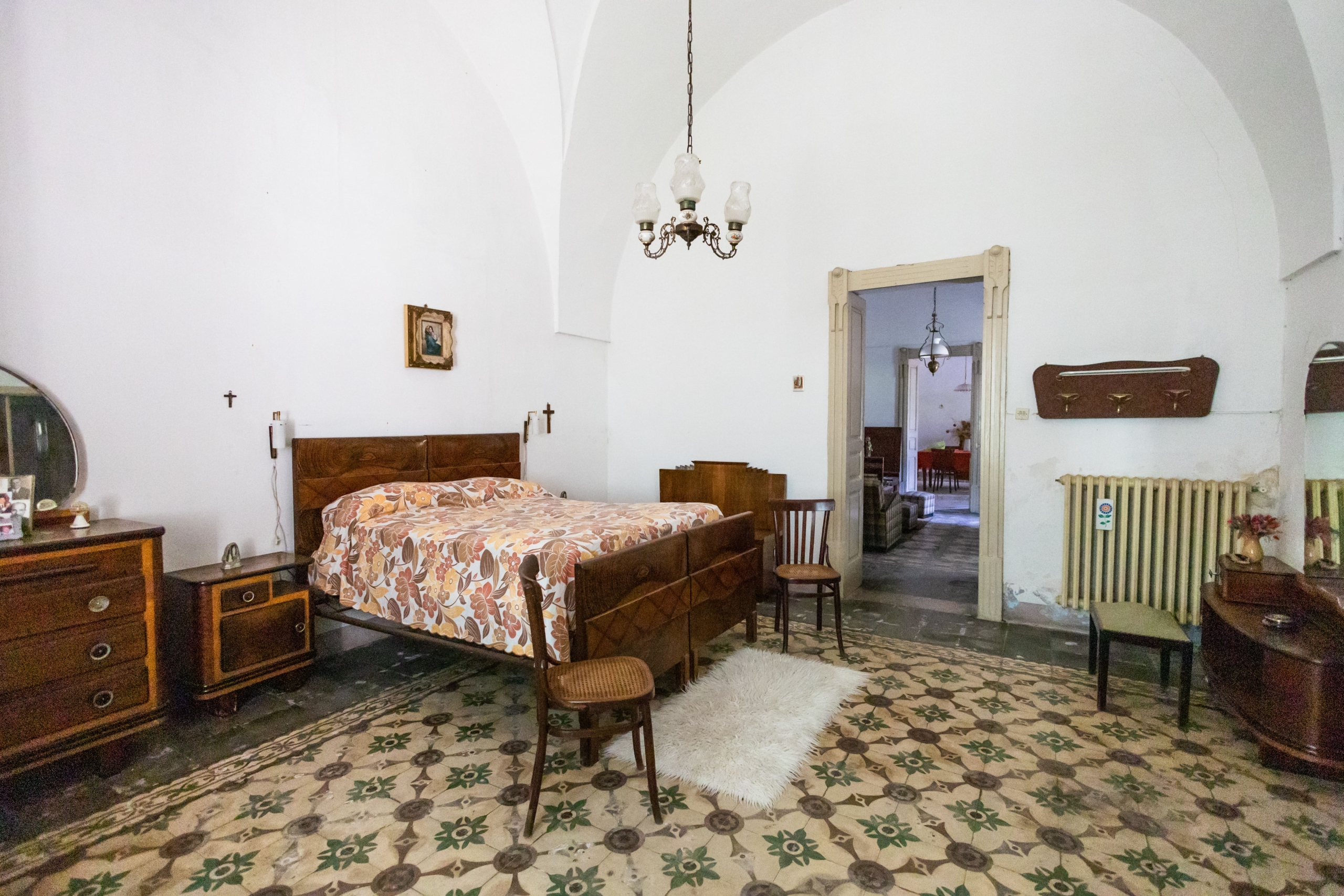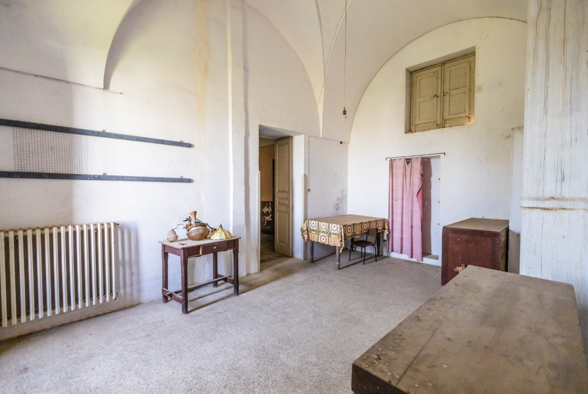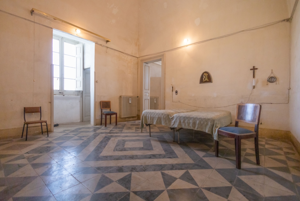 Il piano superiore custodisce la dimora nobiliare e si compone di: ingresso, un affascinante salotto con affreschi e balcone, tre camere da letto di cui una decorata con affreschi e loggiato, cucina, soggiorno, bagno e vano pluriuso. Sempre sullo stesso piano troviamo un ulteriore appartamento composto da: salotto, cucina con terrazzino, camera da letto, ulteriore stanza, bagno e ripostiglio.