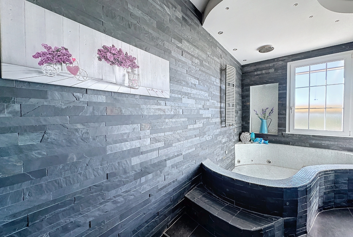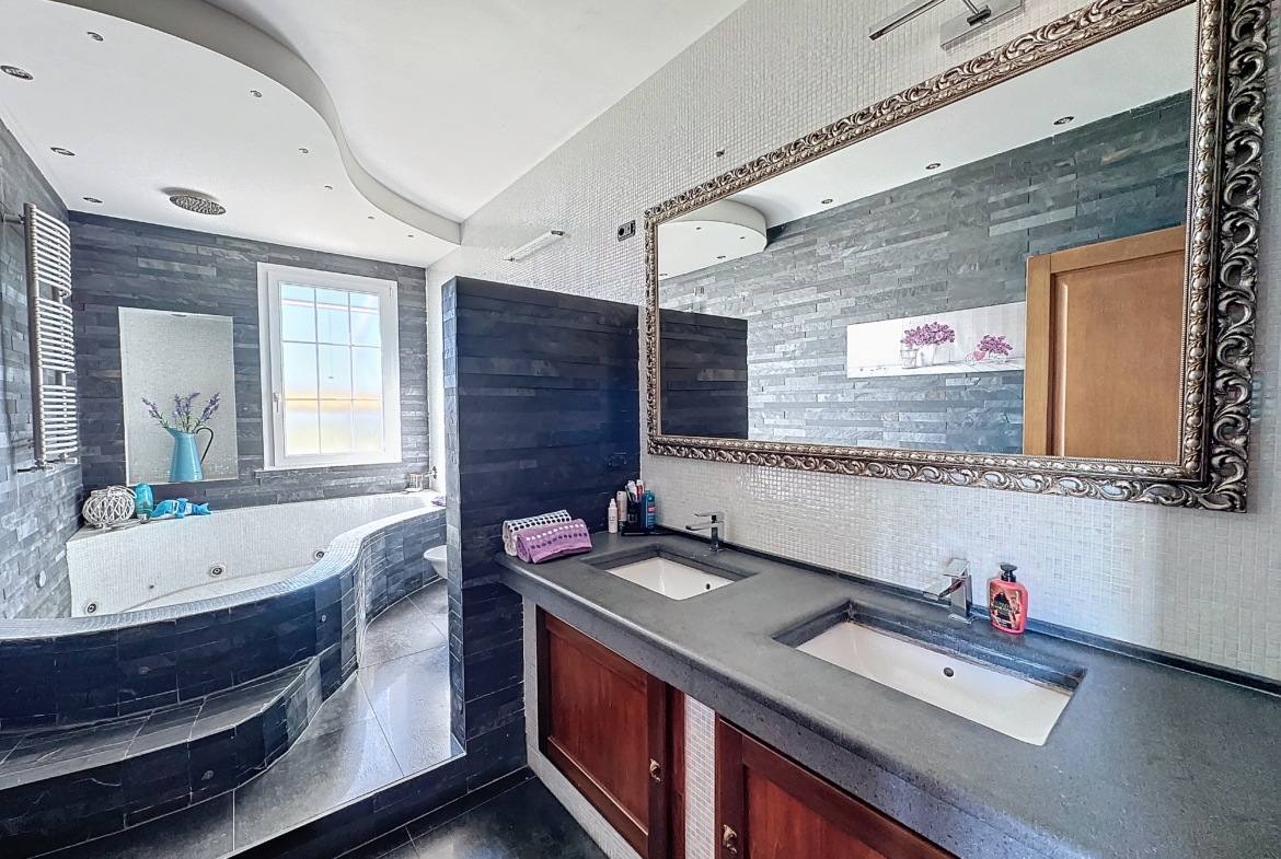 Una breve passeggiata lungo il corridoio ti conduce alla camera da letto principale completa di bagno en suite e cabina armadio, dove potrai immergerti nel comfort e nel lusso. Accanto, una seconda camera da letto accogliente e un bagno con vasca idromassaggio ti coccolano con un senso di benessere e relax.