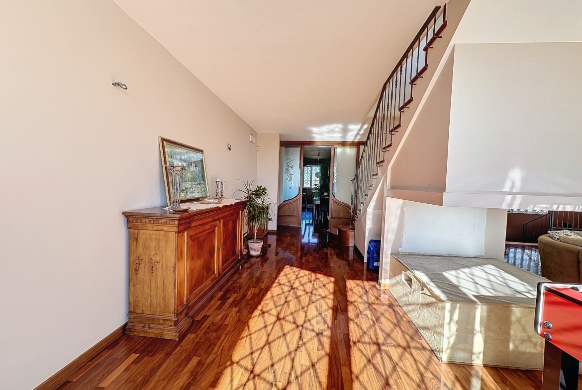 Salendo al primo piano, scopri un elegante living, uno studio perfetto per lasciare libera la tua creatività e un’altra camera da letto con bagno, tutte con accesso diretto al terrazzo, regalandoti momenti indimenticabili all’aperto. E per chi ama il divertimento e il relax, la mansarda ti sorprende con una zona dedicata al tempo libero, con sala biliardo e zona bar, ideale per organizzare serate memorabili con gli amici.