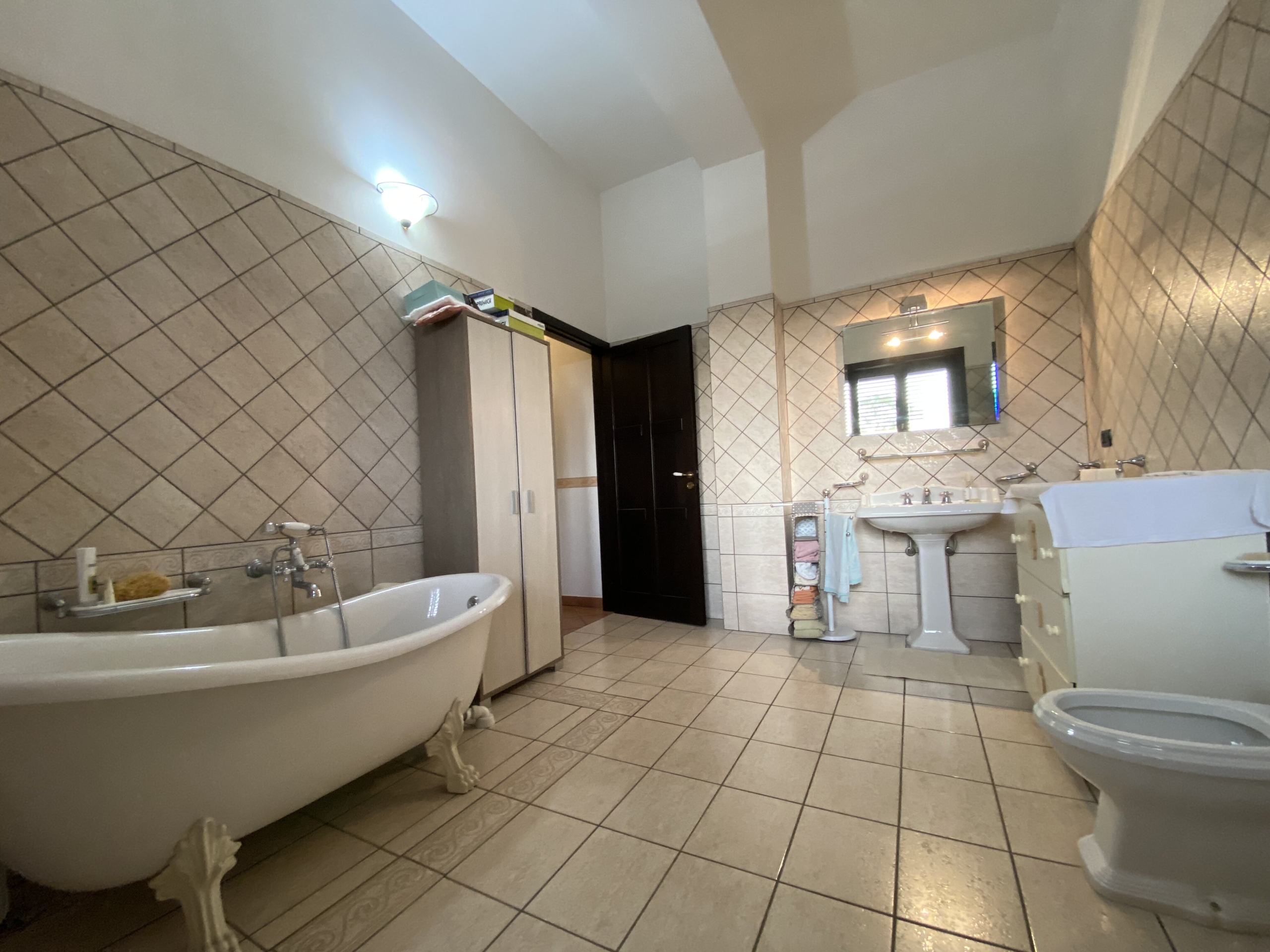 Al piano terra troviamo un’ampia e luminosa zona living con una cucina abitabile, due splendidi bagni e tre camere da letto. Una dependance con ingresso indipendente composta da una spaziosa zona living con cucina attrezzata, in open-space, una camera da letto e un bagno. Il tutto circondato da un grazioso porticato, illuminato e vitalizzato dal giardino circostante con delizioso prato inglese ed alberi ad alto fusto.