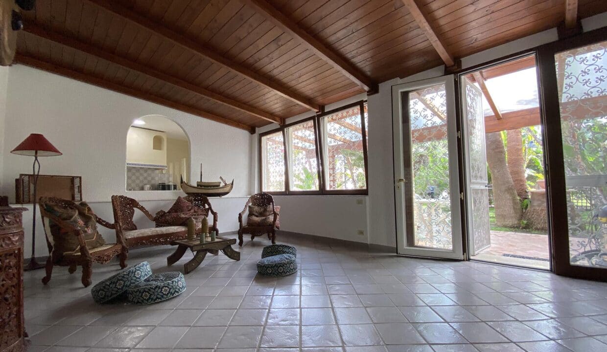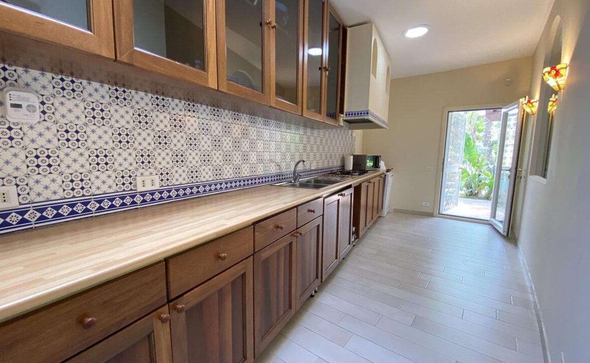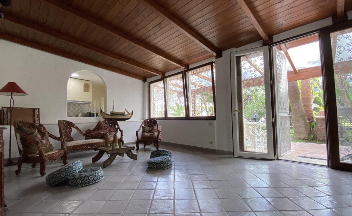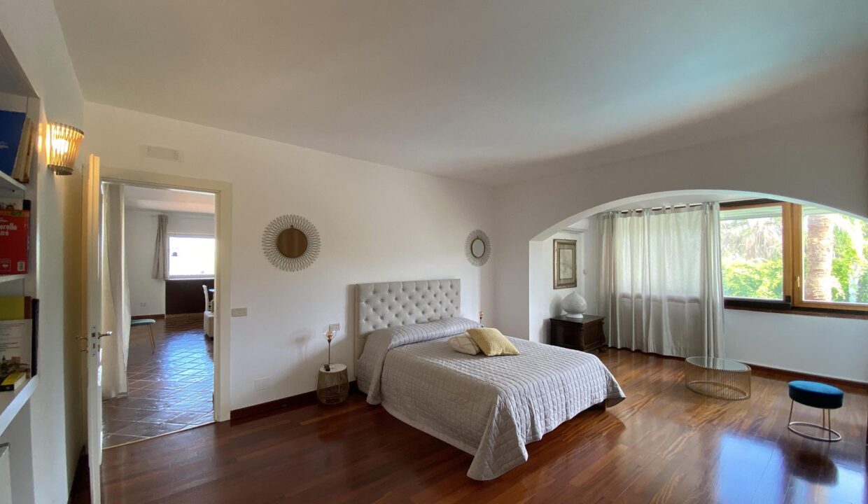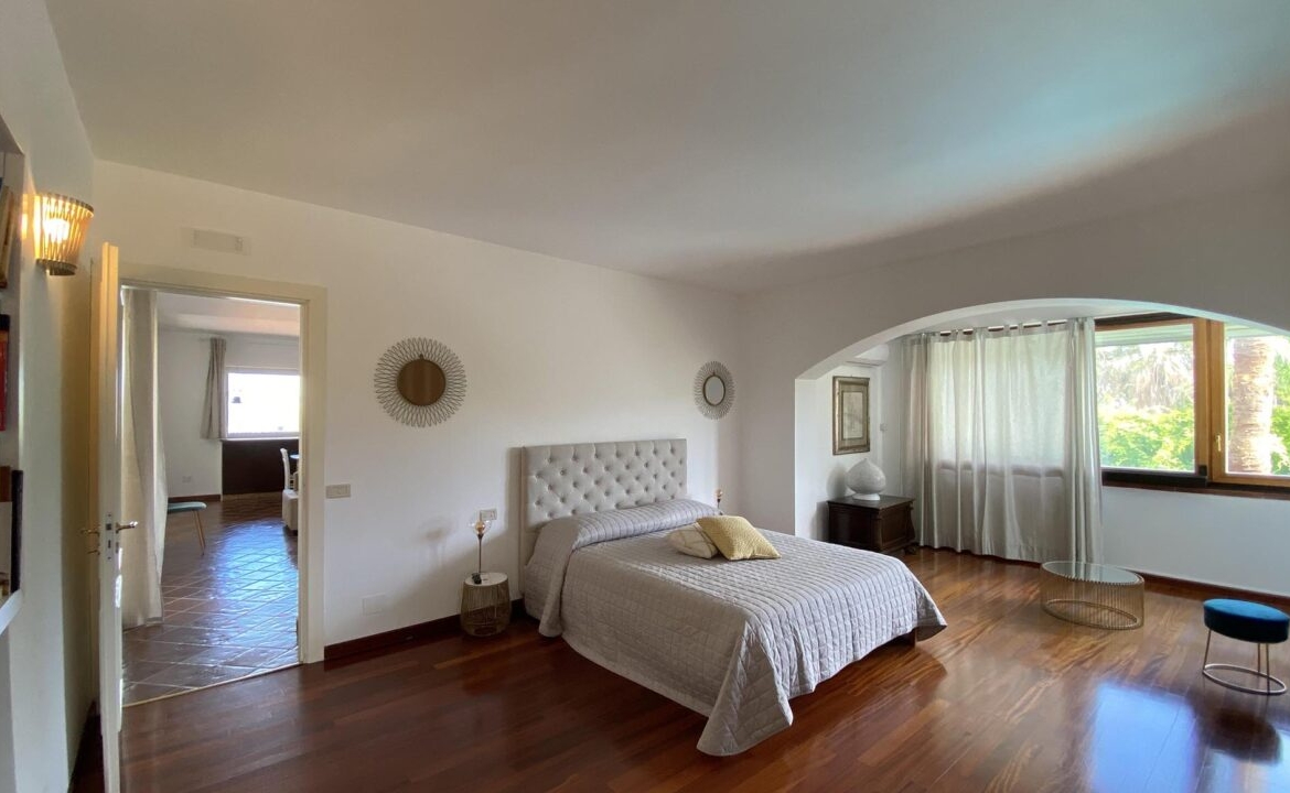 L’unità principale è uno spettacolare volume costruito su due livelli. Il piano terra è composto da ingresso, una caratteristica veranda coperta, ampia zona living open space arredata con comodi divani e impreziosita da un camino di design, spaziosa cucina abitabile e 3 piacevoli camere da letto con bagno en-suite finemente rifinite, ciascuna con vista sulla piscina. Una scala conduce al primo piano, dove troviamo una luminosissima e grande suite dotata di bagno completo anche di vasca idromassaggio, un’ampia zona living e un balcone di 30 mq con vista sulla piscina. La particolarità del primo piano è data dal terrazzo raggiungibile dall’ampio salone che offre una privilegiata vista sul mare ed è in parte coperto per garantire uno spazio funzionale anche nelle ore più calde del giorno, per trascorrere i tuoi momenti conviviali.