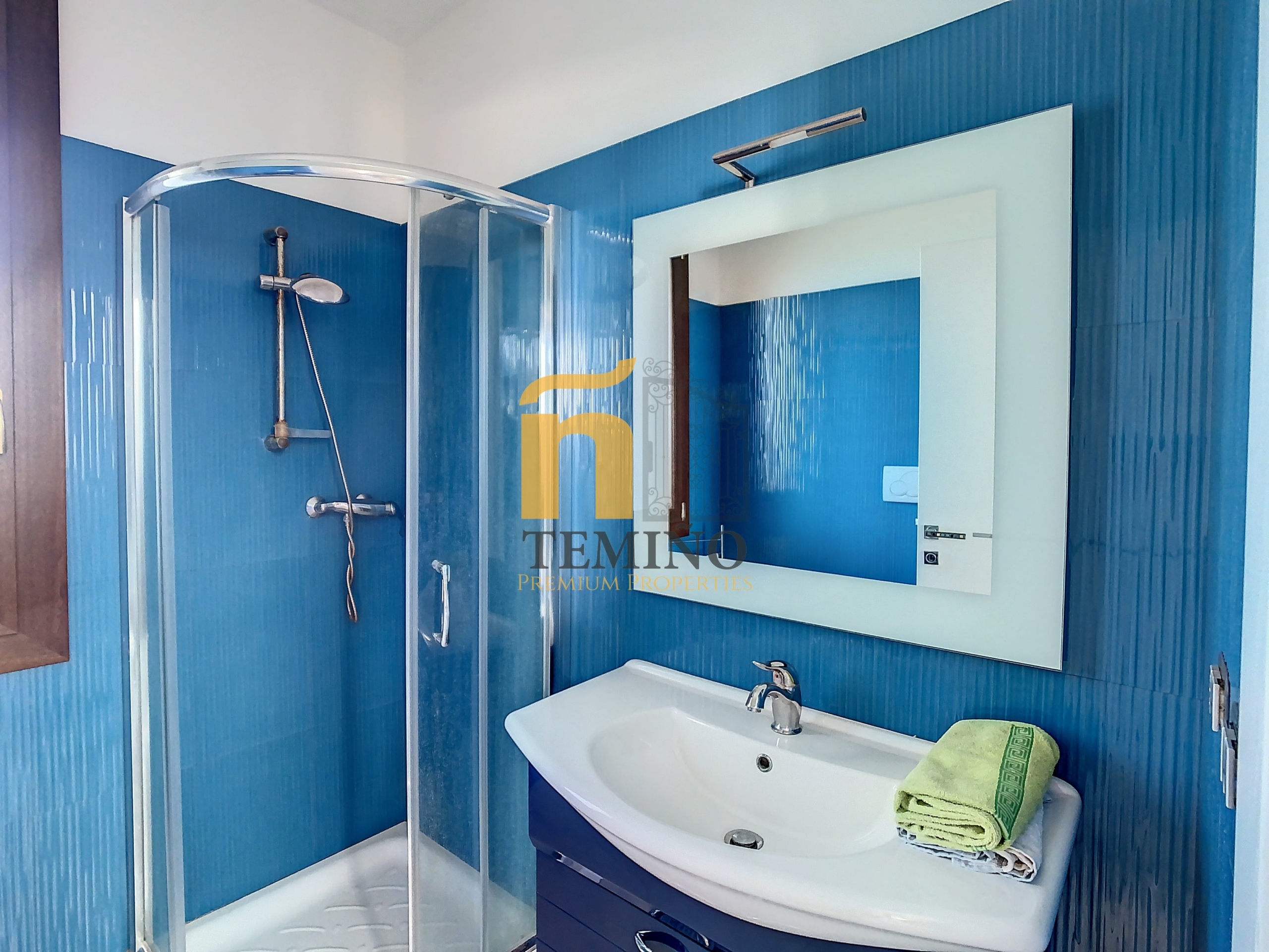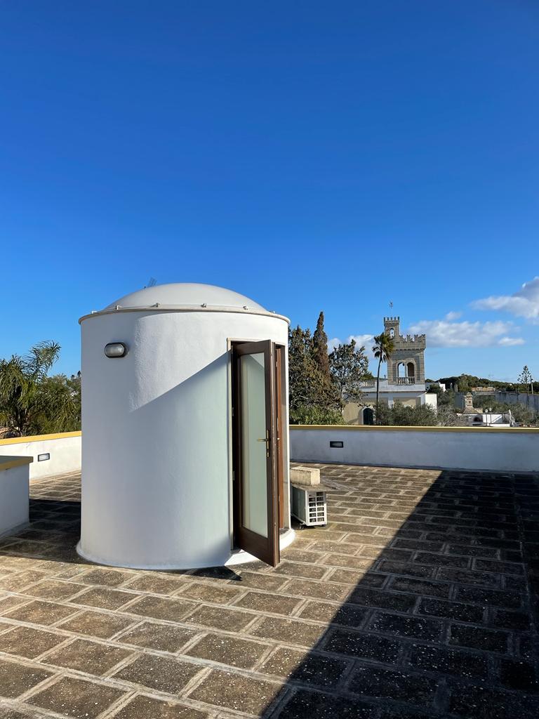 L’abitazione su tre livelli e con una superficie coperta lorda di circa 293mq consiste in: piano seminterrato di circa 108 mq finestrato su 3 lati con ampia zona living open space con uno splendido camino, 3 camere da letto matrimoniali, un bagno e un giardino di pertinenza con box doccia esterno; il piano rialzato di circa 125 mq composto da uno spazioso soggiorno con zona pranzo attigua, cucina, una camera da letto ed un bagno, giardino posteriore di circa 60mq e veranda frontale di prospetto di circa 70 mq; un primo piano di circa 60 mq con altre camere da letto, bagno, vano da adibire a cucina, una terrazza soleggiata di circa 70 mq con vista sul meraviglioso giardino e sul mare cristallino. Sul lastricato solare, invece, si può godere di una meravigliosa vista panoramica sul golfo di Gallipoli, ottima location per ammirare, durante un aperitivo con amici, il sole rosso fuoco che si immerge nelle acque azzurre salentine. Divertiti in questa splendida villetta con gli amici di ombrellone conosciuti al mare in una giornata calda salentina e sorseggia un buon drink rilassato in terrazza.